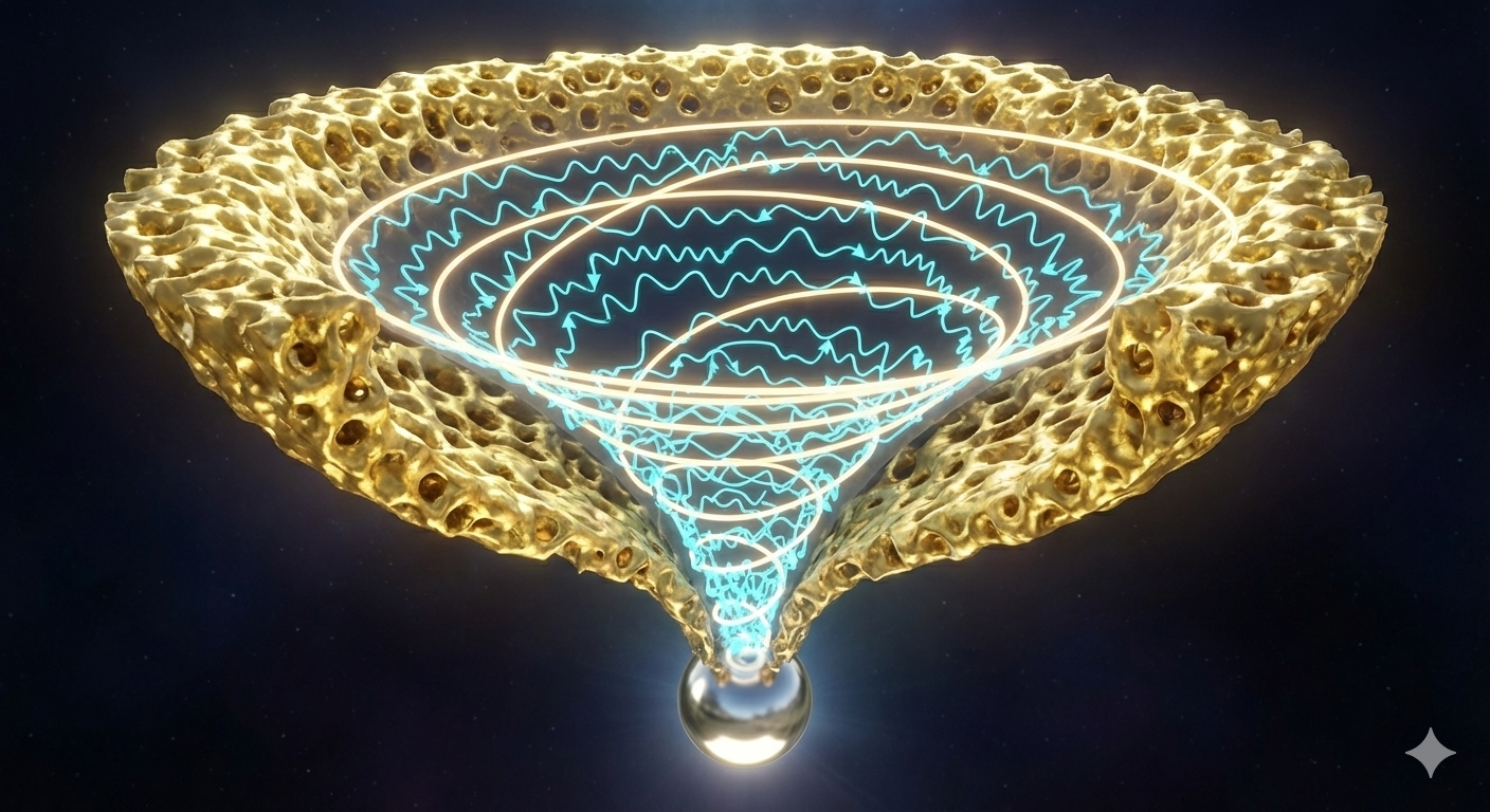 This is a conceptual illustration and not based on actual matter. It acts as an analogy for how the Chiral Chimera Ansatz acts as a "Mode Cleaner," preserving the core signal while dissipating asymmetric error modes.